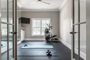 We finished a basement into a beautiful studio apartment and media room for these Atlanta-area clients. And we managed to squeeze in some conveniently located laundry appliances right in the kitchenette. Though you can’t be totally sure where they are …