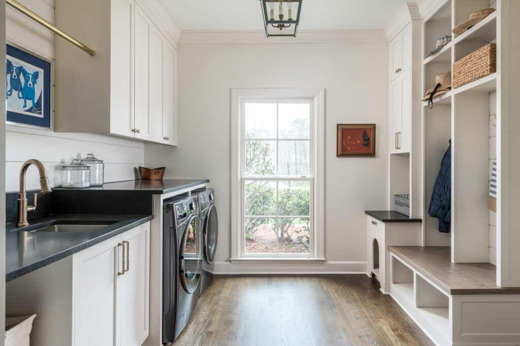 As mentioned, a sink in the laundry room is always handy. It’s not only great for working on stains and handwashing delicates, but also for creating a flower arranging station. A utility sink is also good for muddy cleats.